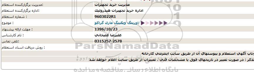 اداره برگزارکننده استعلام: اداره خرید تجهیزات هیدرولیک
