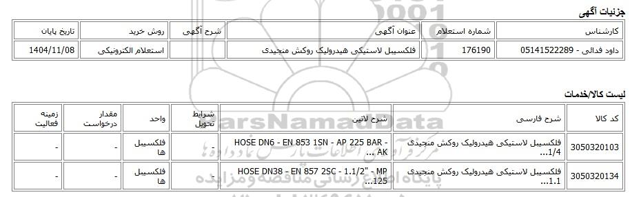داود فدائی - 05141522289176190فلکسیبل لاستیکی هیدرولیک روکش منجیدیاستعلام الکترونیکی1404/11/08