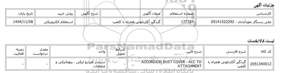 2051340012گردگیر آکاردئونی همراه با کلمپACCORDION DUST COVER - ACC TO ATTACHMENT -سیلندر هیدرو لیکی ، پنوماتیکی و متعلقات--