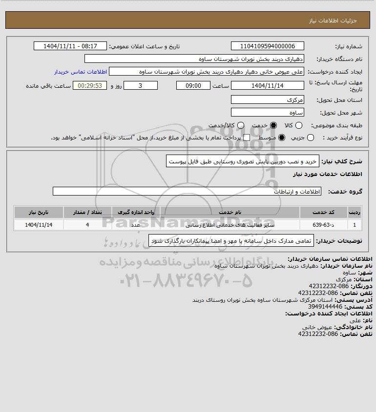 شرح کلی نیاز: خرید و نصب دوربین پایش تصویری روستایی طبق فایل پیوست