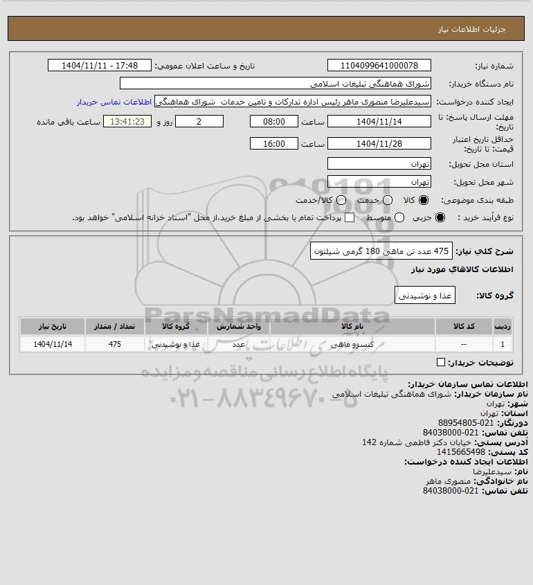 شرح کلی نیاز: 475 عدد تن ماهی 180 گرمی شیلتون