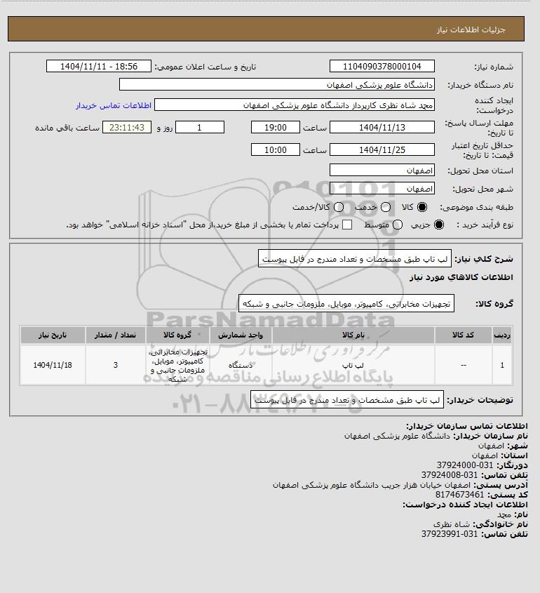 نام دستگاه خریدار:دانشگاه علوم پزشکی اصفهان