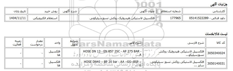 داود فدائی - 05141522289177965فلکسیبل لاستیکی هیدرولیک روکش نسوزسیلیکونیاستعلام الکترونیکی1404/11/11