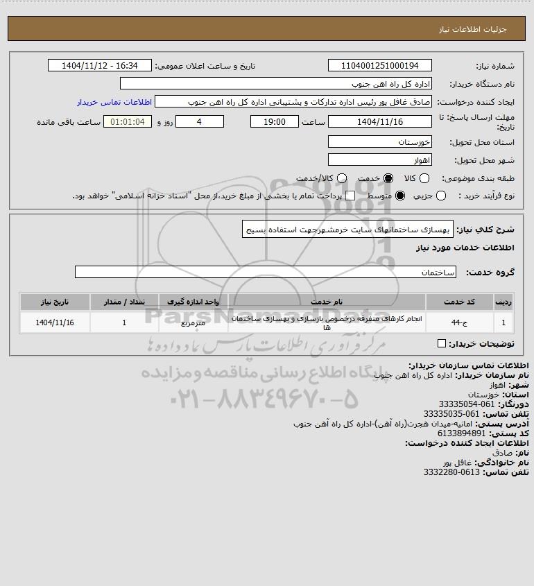 نام دستگاه خریدار:اداره کل راه اهن جنوب