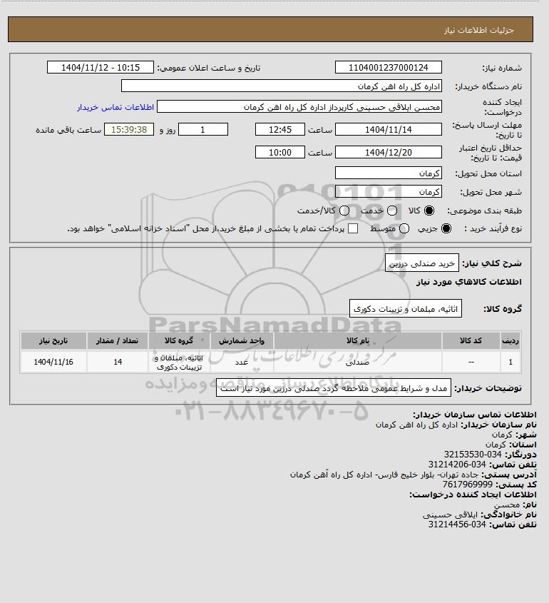 نام دستگاه خریدار:اداره کل راه اهن کرمان