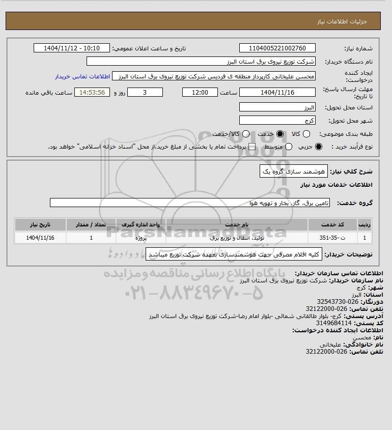 شرح کلی نیاز: هوشمند سازی گروه یک