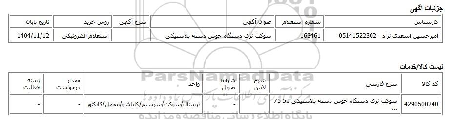 استعلام الکترونیکی سوکت نری دستگاه جوش دسته پلاستیکی, استعلام الکترونیکی، سوکت نری دستگاه جوش دسته پلاستیکی