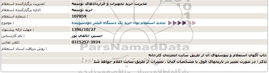 موضوع : تجدید استعلام بهاء خرید یک دستگاه فیلتر خودشوینده