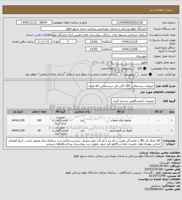 نام دستگاه خریدار:دانشگاه علوم پزشکی و خدمات بهداشتی درمانی جندی شاپور اهواز