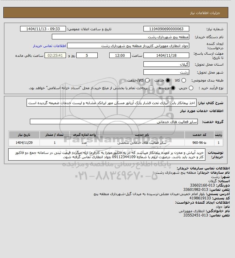 نام دستگاه خریدار:منطقه پنج شهرداری رشت