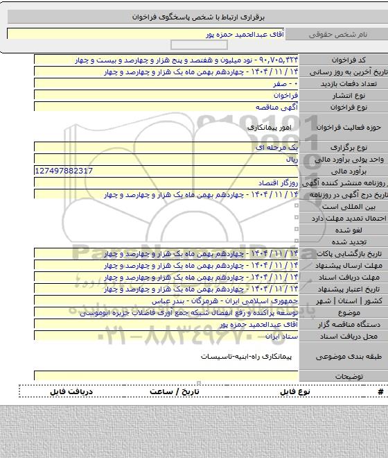 برای شرکت در مناقصه حتما از تصویر آگهی در سایت پارس نماد داده ها استفاده نمایید