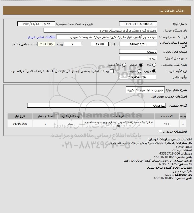 نام دستگاه خریدار:دهیاری کیوره بخش مرکزی شهرستان بروجرد