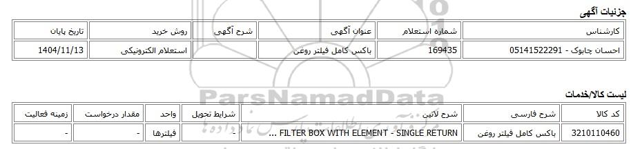 احسان چابوک - 05141522291169435باکس کامل فیلتر روغناستعلام الکترونیکی1404/11/13