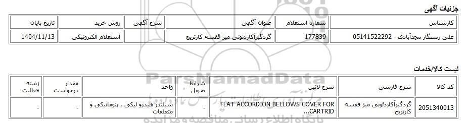 علی رستگار محمدآبادی - 05141522292177839گردگیرآکاردئونی میز قفسه کارتریجاستعلام الکترونیکی1404/11/13