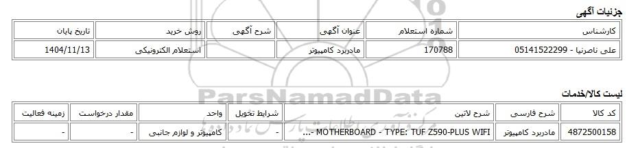 علی ناصرنیا - 05141522299170788مادربرد کامپیوتراستعلام الکترونیکی1404/11/13