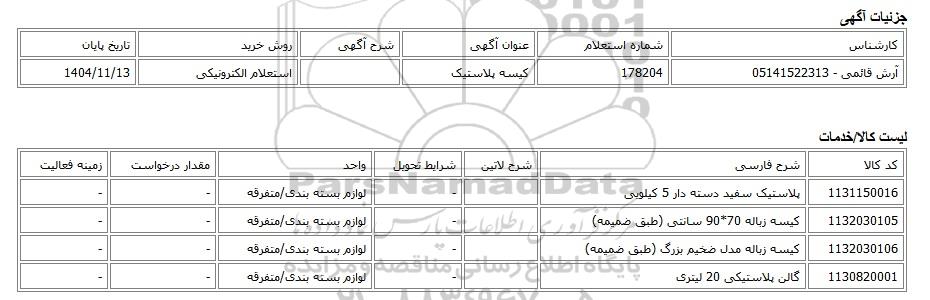 آرش قائمی - 05141522313178204کیسه پلاستیکاستعلام الکترونیکی1404/11/13
