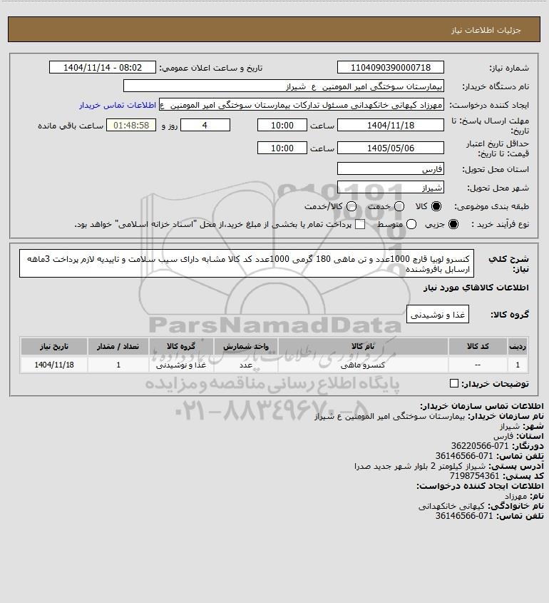 نام دستگاه خریدار:بیمارستان سوختگی امیر المومنین ع شیراز