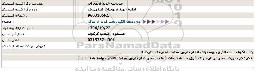 اداره برگزارکننده استعلام: اداره خرید تجهیزات هیدرولیک