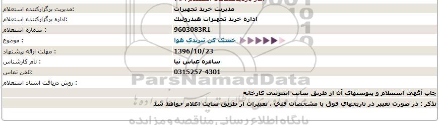 اداره برگزار کننده استعلام : اداره خرید تجهیزات هیدرولیک