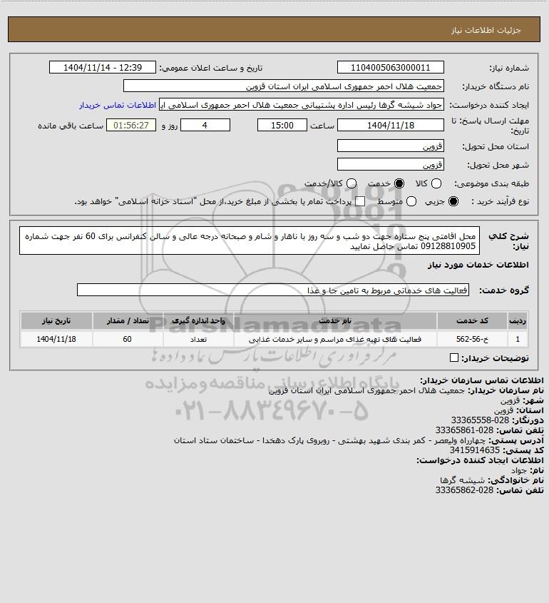 نام دستگاه خریدار:جمعیت هلال احمر جمهوری اسلامی ایران استان قزوین