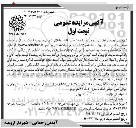 آگهی مزایده عمومی نوبت اول