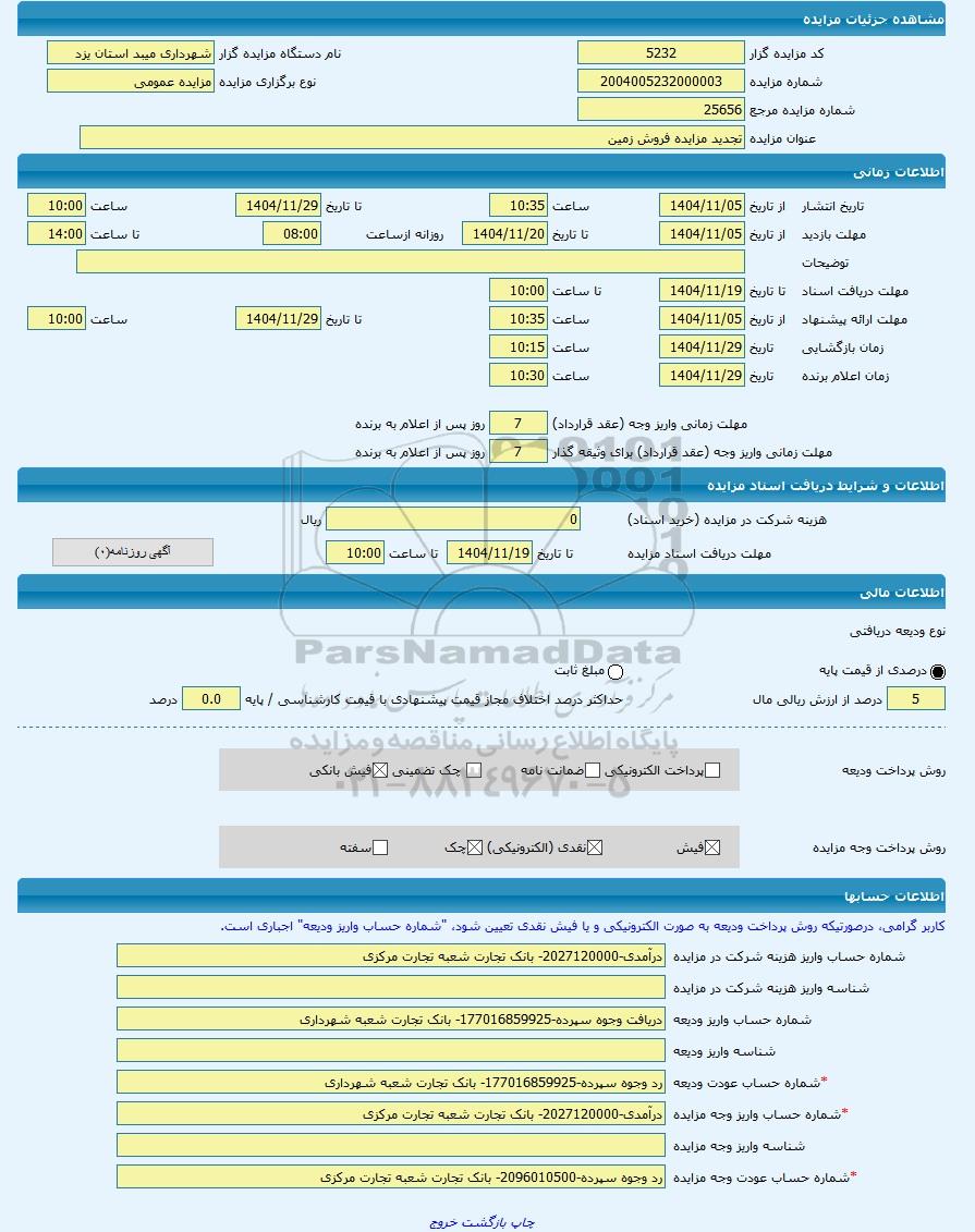 | شماره مزایده مرجع | 25656 | |||