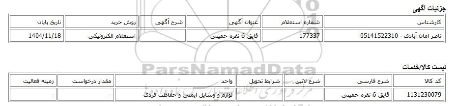 کارشناسشماره استعلامعنوان آگهیشرح آگهیروش خریدتاریخ پایان