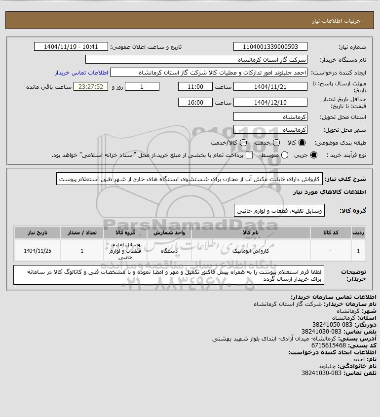 نام دستگاه خریدار:شرکت گاز استان کرمانشاه