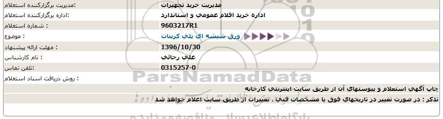اداره برگزارکننده استعلام: اداره خرید اقلام عمومی و استاندارد