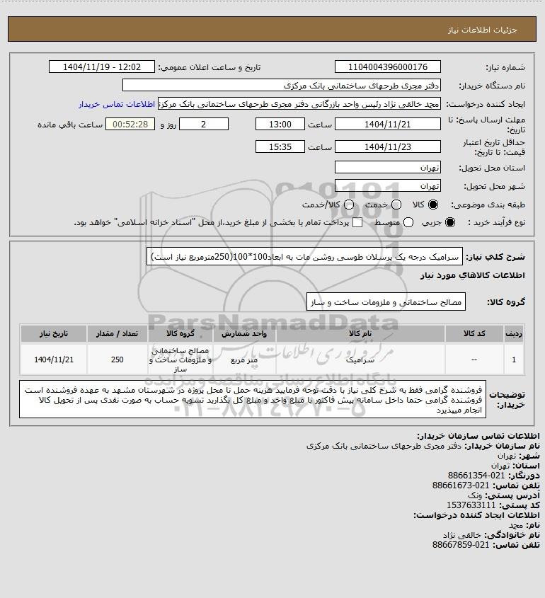 شرح کلی نیاز: سرامیک درجه یک پرسلان طوسی روشن مات به ابعاد100*100(250مترمربع نیاز است)