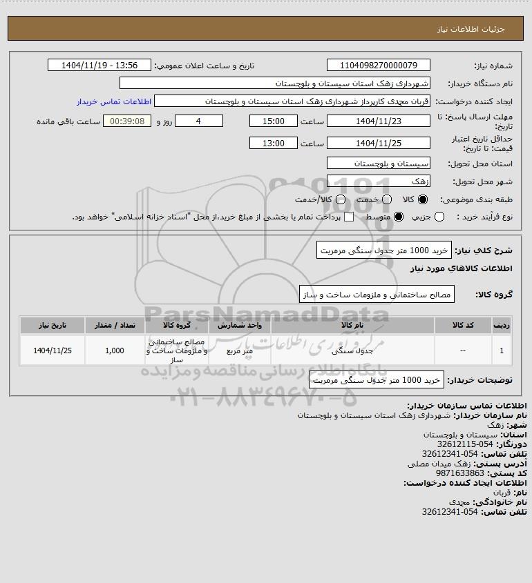 شرح کلی نیاز: خرید 1000 متر جدول سنگی مرمریت