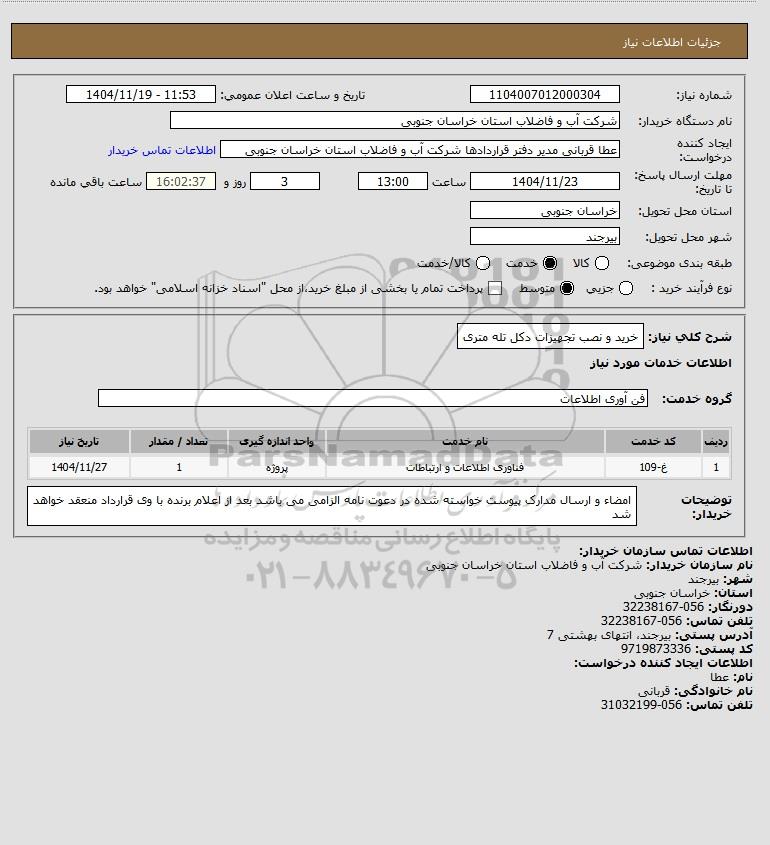 شرح کلی نیاز: خرید و نصب تجهیزات دکل تله متری
