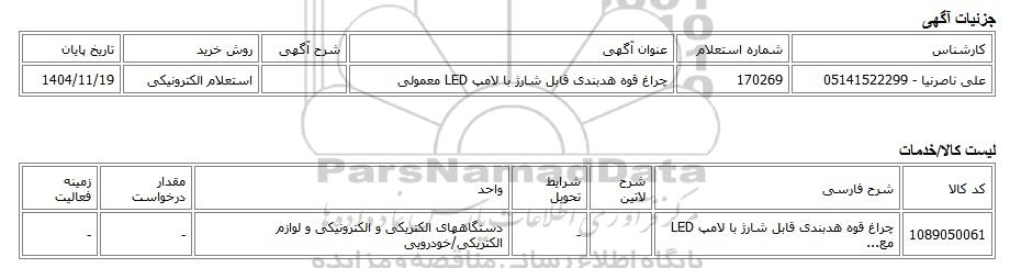 استعلام الکترونیکی چراغ قوه هدبندی قابل شارژ با لامپ LED معمولی, استعلام الکترونیکی، چراغ قوه هدبندی قابل شارژ با لامپ LED معمولی