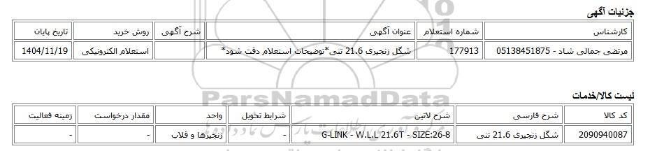 مرتضی جمالی شاد - 05138451875177913شگل زنجیری 21.6 تنی*توضیحات استعلام دقت شود*استعلام الکترونیکی1404/11/19