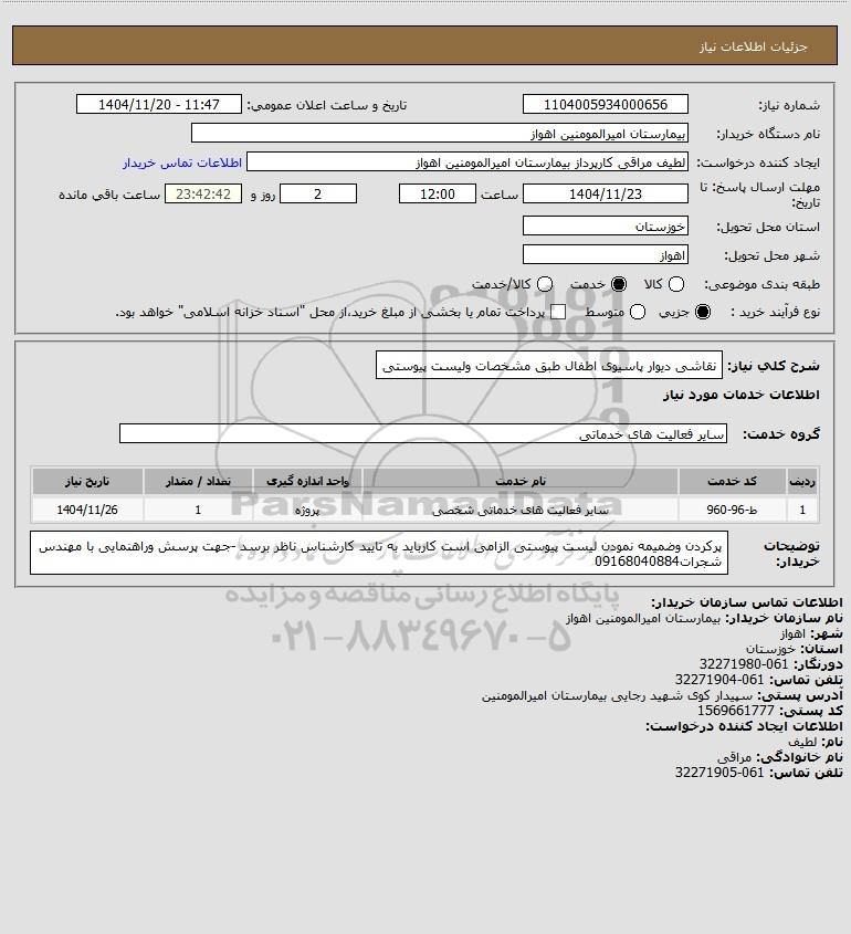 شرح کلی نیاز: نقاشی دیوار پاسیوی اطفال طبق مشخصات ولیست پیوستی