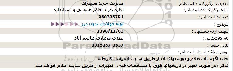اداره برگزارکننده استعلام: اداره خرید اقلام عمومی و استاندارد