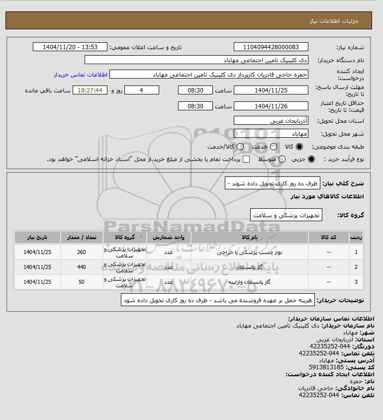 نام دستگاه خریدار:دی کلینیک تامین اجتماعی مهاباد