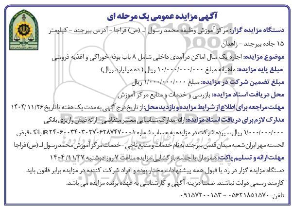 مزایده اجاره یک سال اماکن درآمدی داخلی