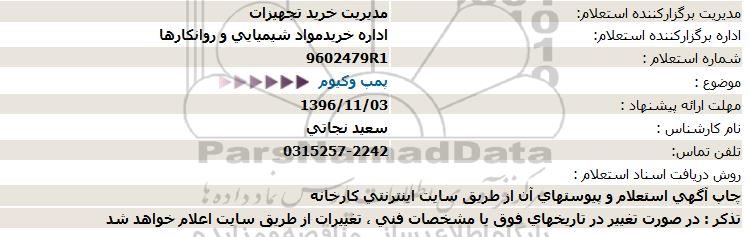 اداره برگزارکننده استعلام: اداره خرید مواد شیمیایی و روانکارها