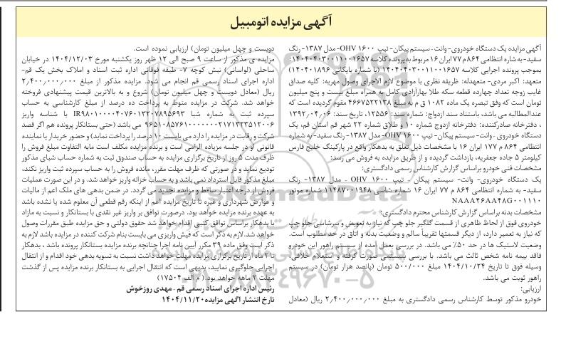 آگهی مزایده اتومبیل