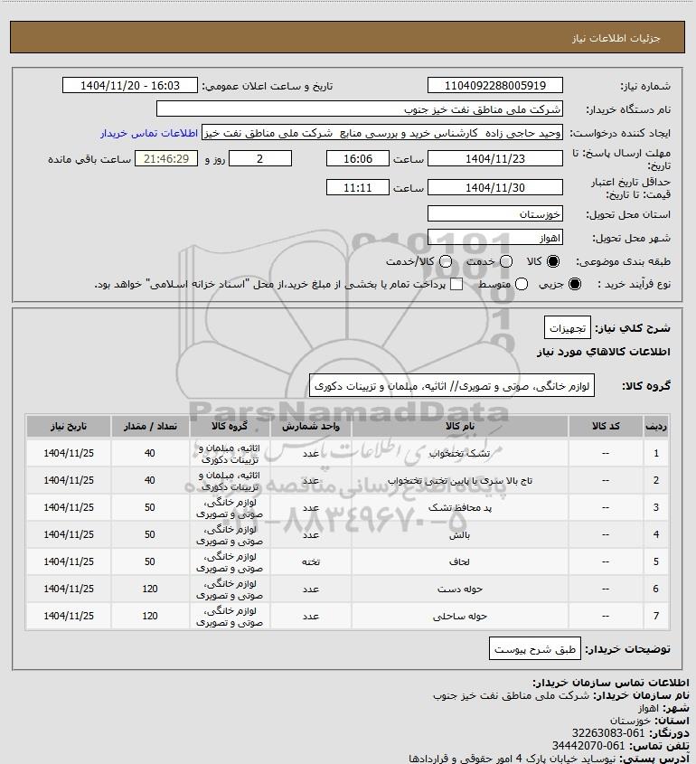 نام دستگاه خریدار:شرکت ملی مناطق نفت خیز جنوب