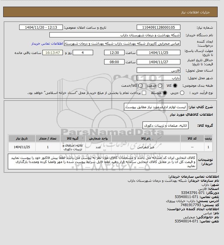شرح کلی نیاز: لیست لوازم اداری مورد نیاز مطابق پیوست