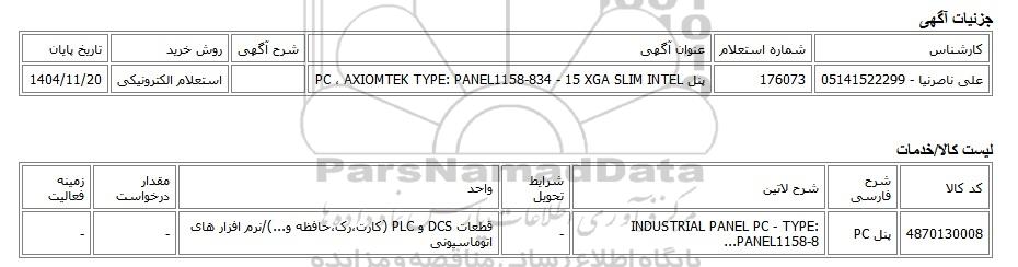 استعلام الکترونیکی پنل PC AXIOMTEK TYPE: PANEL1158-834 - 15 XGA SLIM INTEL, استعلام الکترونیکی، پنل PC ، AXIOMTEK TYPE: PANEL1158-834 - 15 XGA SLIM INTEL