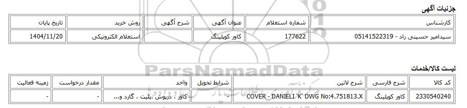 سیدامیر حسینی راد - 05141522319177622کاور کوپلینگاستعلام الکترونیکی1404/11/20