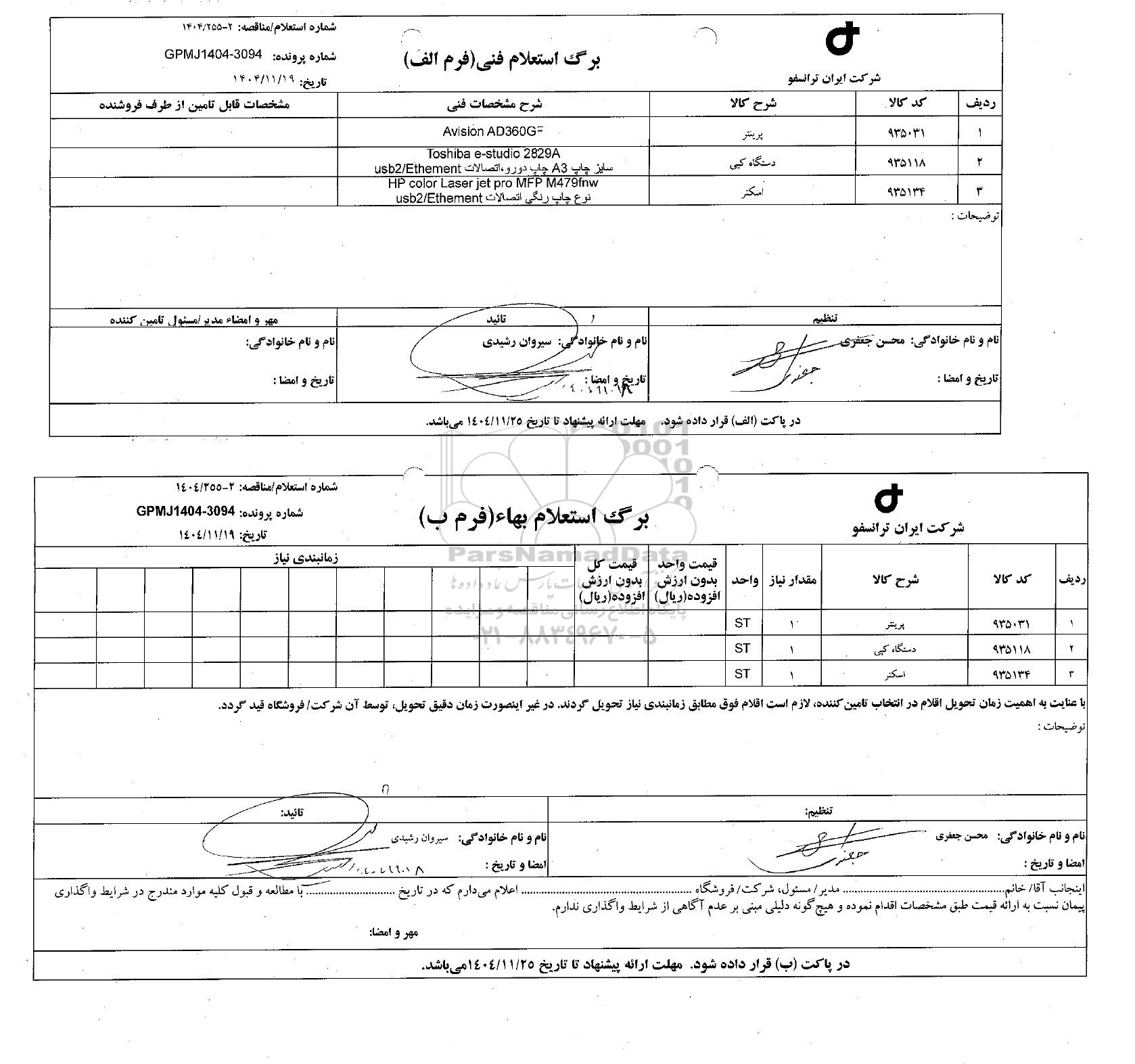 در پاکت (الف) قرار داده شود. مهلت ارائه پیشنهاد تا تاریخ 1404.11.25 می باشد.