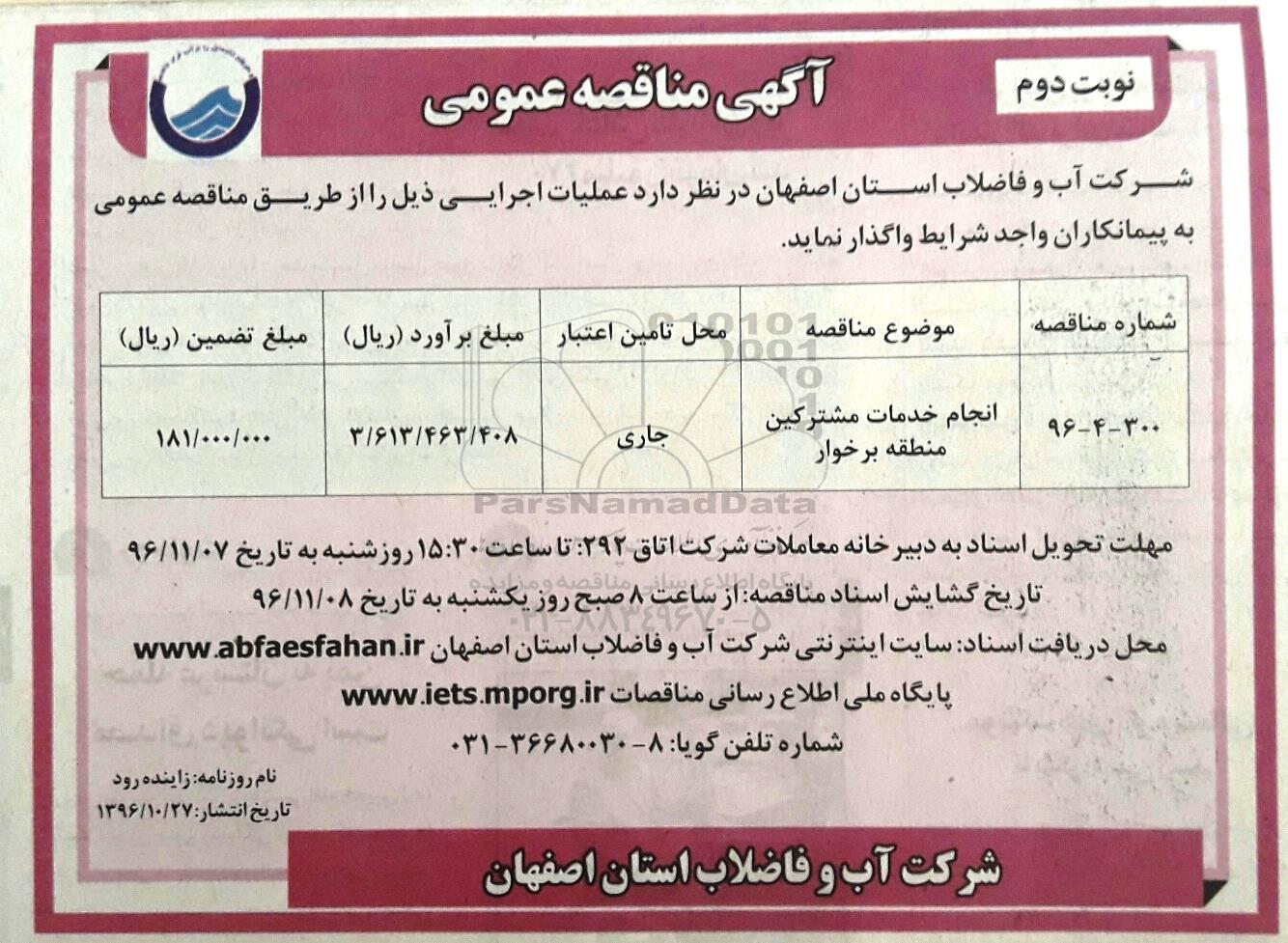 | 96-4-300 | انجام خدمات مشترکین منطقه برخوار |
