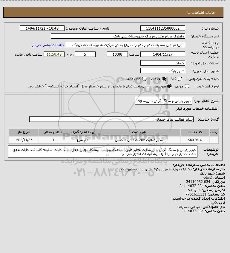شرح کلی نیاز: دیوار چینی و سنگ فرش با زیرسازی