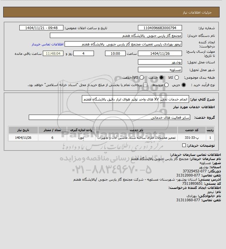 نام سازمان خریدار: مجتمع گاز پارس جنوبی پالایشگاه هفتم