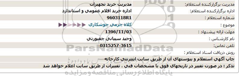 اداره برگزارکننده استعلام: اداره خرید اقلام عمومی و استاندارد