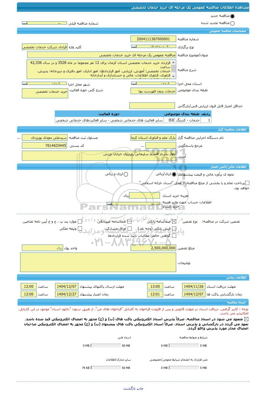 | مبلغ تضمین | 2,500,000,000 | واحد پول | ریال |